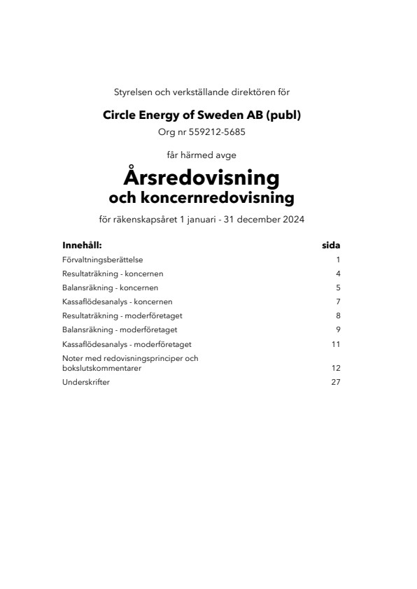 Bolagets årsredovisning för 2024 bifogas och finns att tillgå på hemsida, www.circleenergy.se.